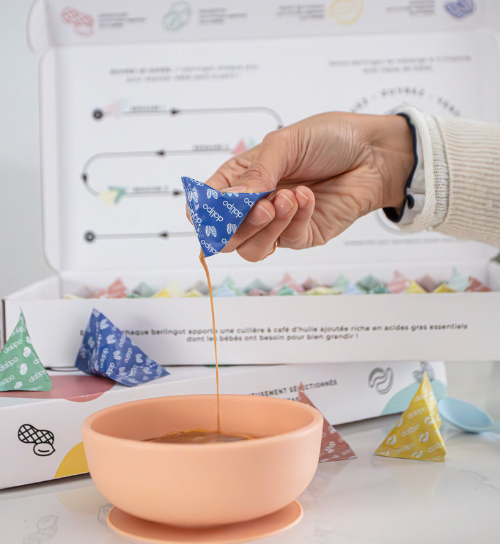 Pour accompagner les parents dans cette période clé, Dalipo propose un programme d’introduction, pensés pour simplifier le quotidien des parents : pas besoin de peser, pas de question sur la texture, une dose adaptée et une progression optimale. L’objectif : permettre une introduction de l’arachide et des fruits à coque, en toute sérénité.